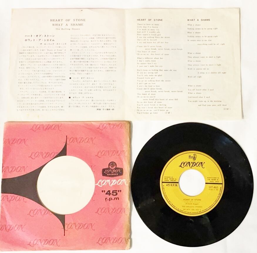 中古レコード ザローリングストーンズ ハートオブストーン ホワットアシェイム EP 7インチシングル ジャケ兼歌詞ライナー付 盤良好 HIT-462 20251216